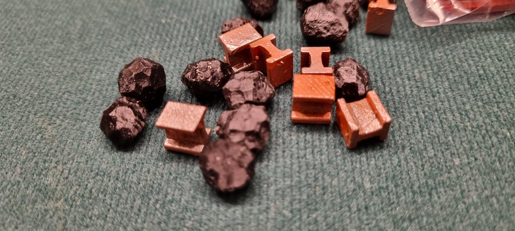 30 Coal, and 25 Iron resources hand painted. Note: Also fits our organisers.