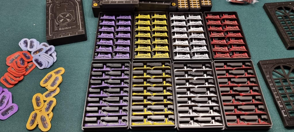 Consisting of 14 train tokens, 14 canal tokens for each player which totals 112 tokens all up for 4 players).