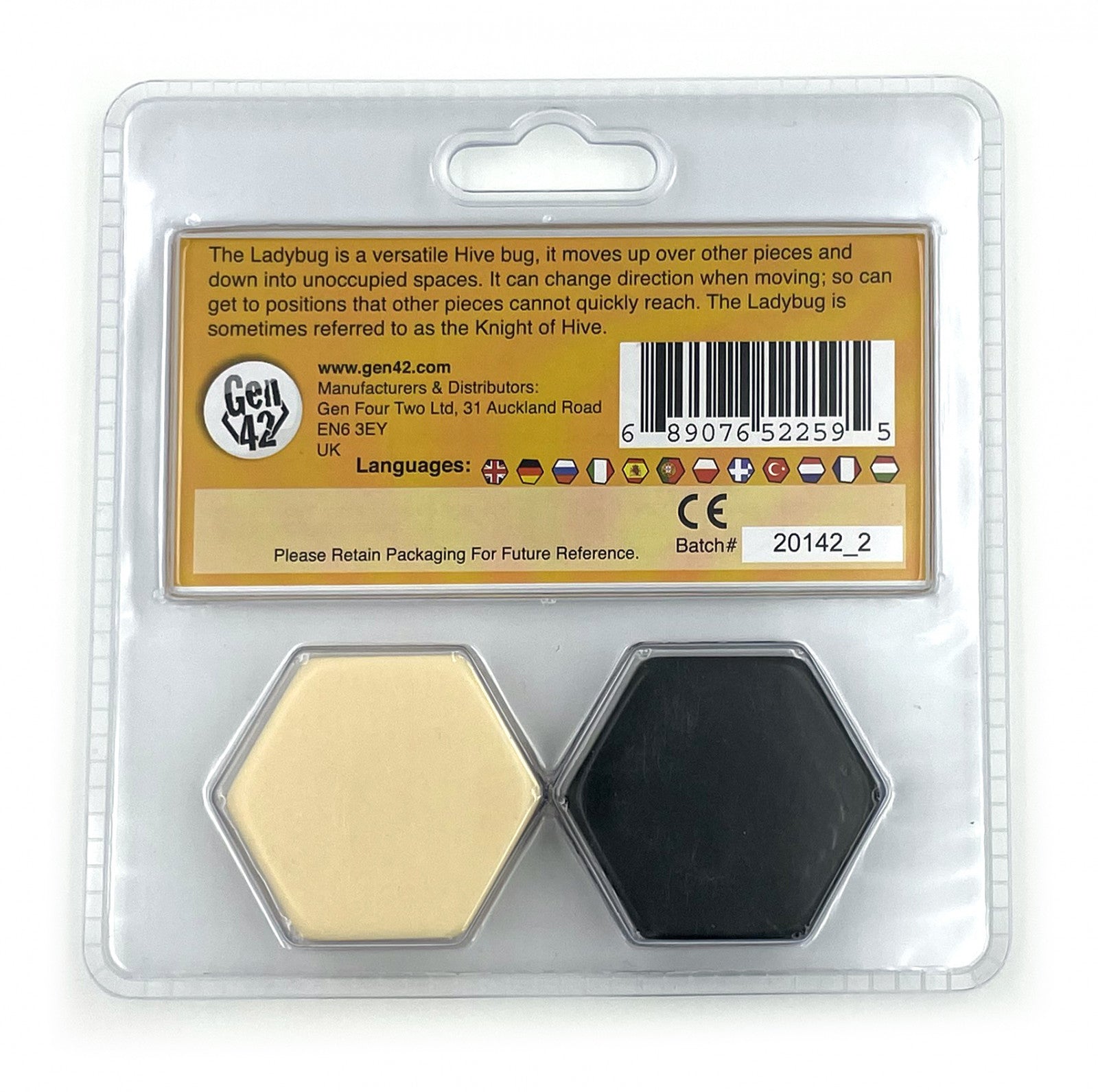 The Hive Ladybug is versatile, it moves up over other pieces and down into unoccupied spaces. The Ladybug is sometimes referred to as the Knight of the Hive.