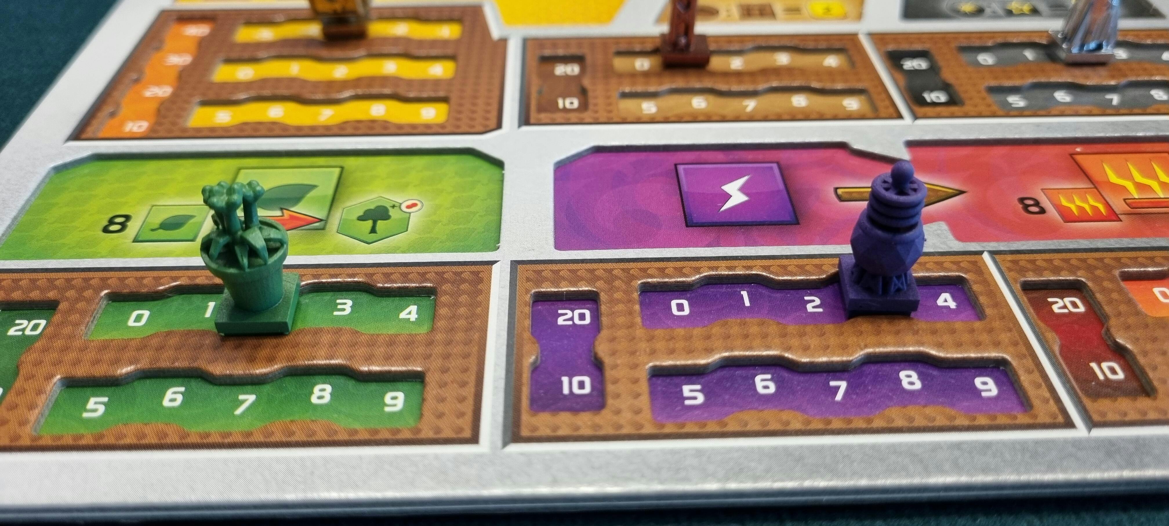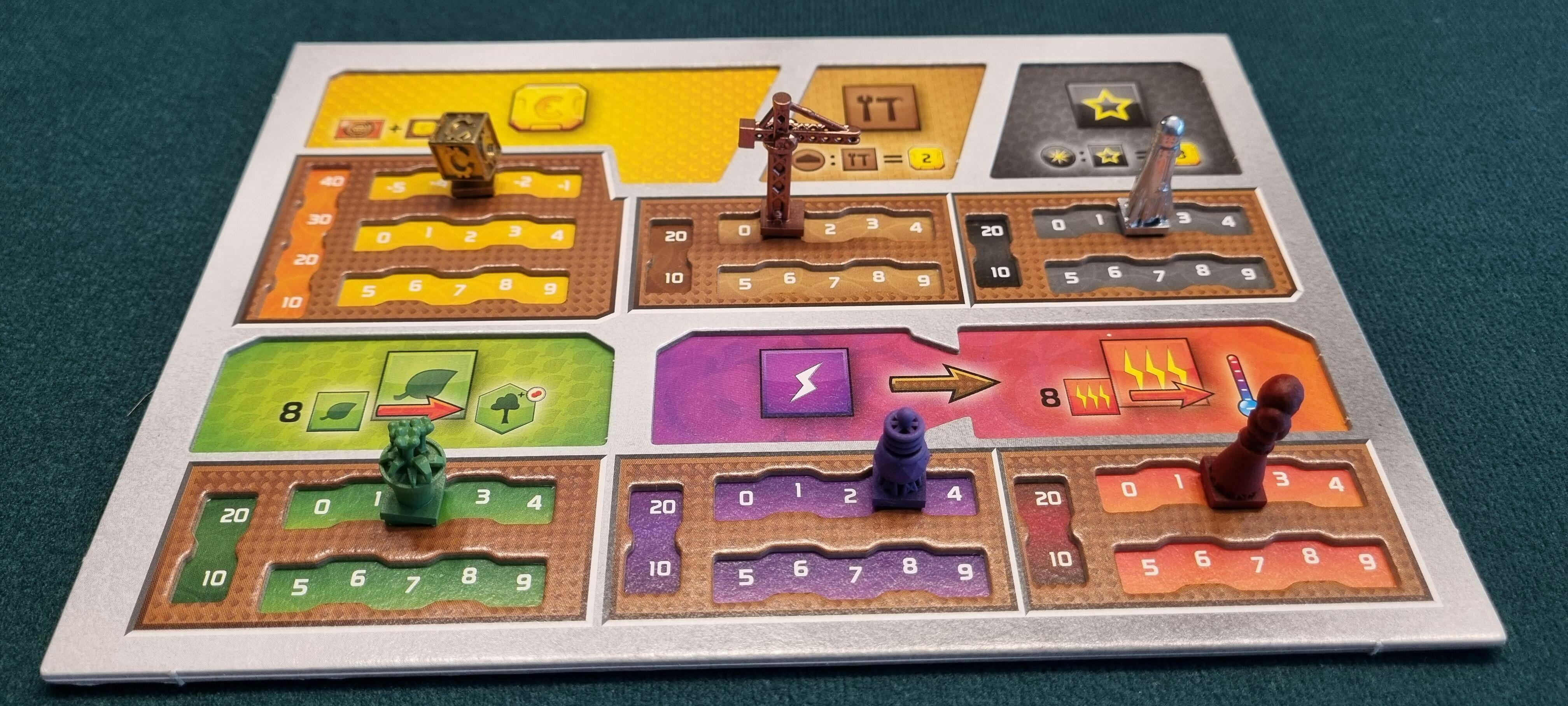 Player advancement tokens are used to represent your Plant Production, Construction Production, Energy Construction, Heat Production, Credit Production and Space Production.