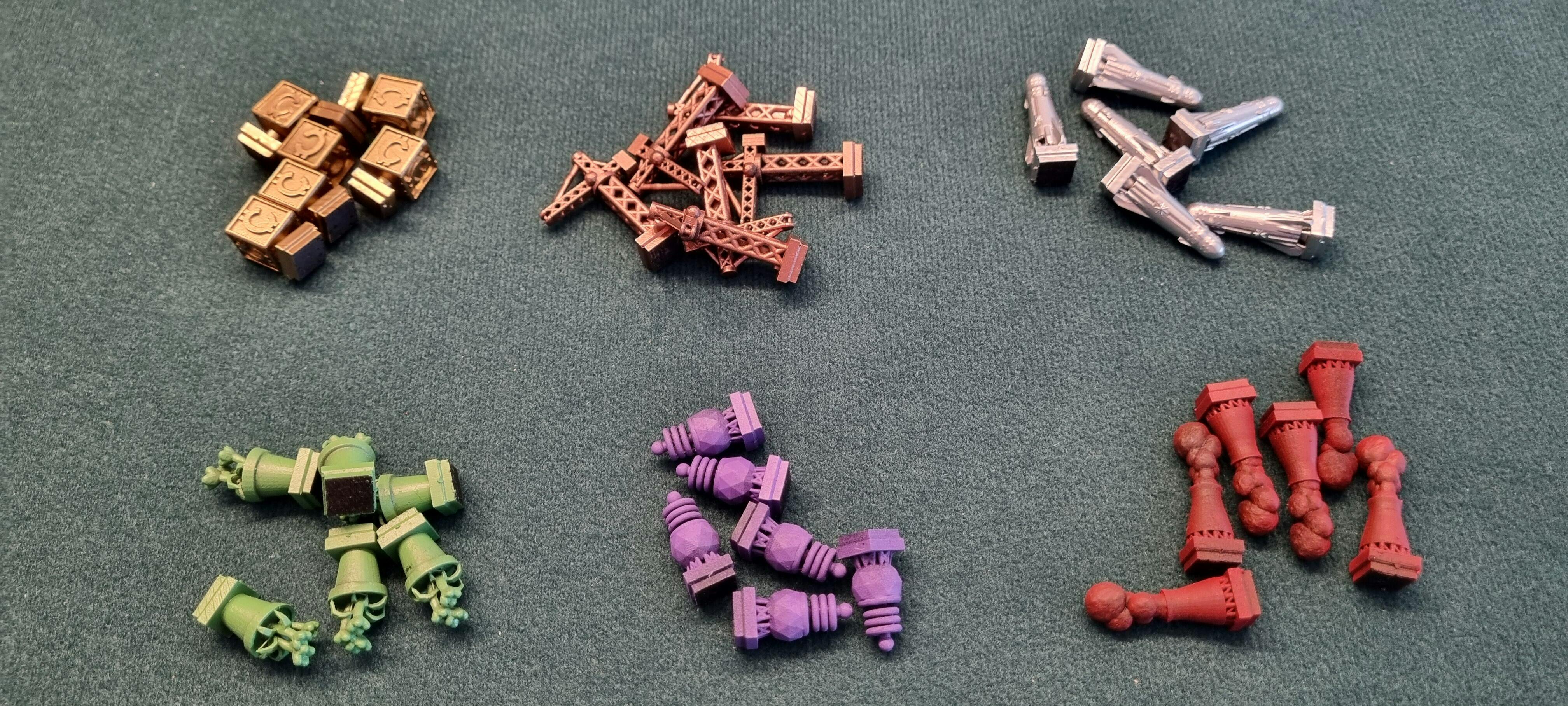 NOTE: We strongly recommend the use of a board overlay or dual layer boards for these tokens. Bumping the player boards may cause your towers to topple or markers to move (A common problem with the base game)! Tokens are compatible with our board overlay trays, and the dual layer board and can be seen in the product pictures.
