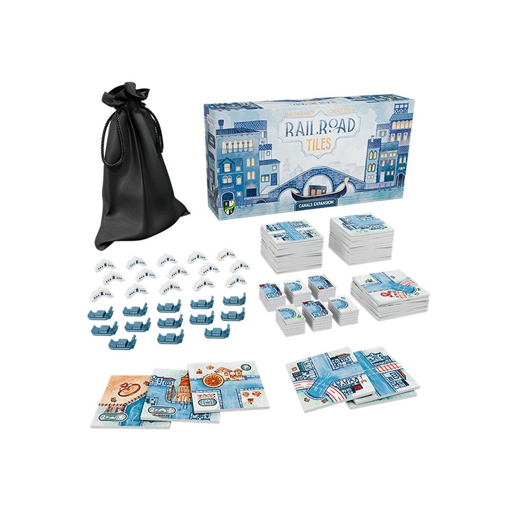 An expansion pack for Railroad Tiles, a sequel to the roll-and-write series Railroad Ink, is a quick-playing tile placement game in which you pick tiles and place routes to build an interconnected community. Add canals to your transportation network and populate them with gondolas!