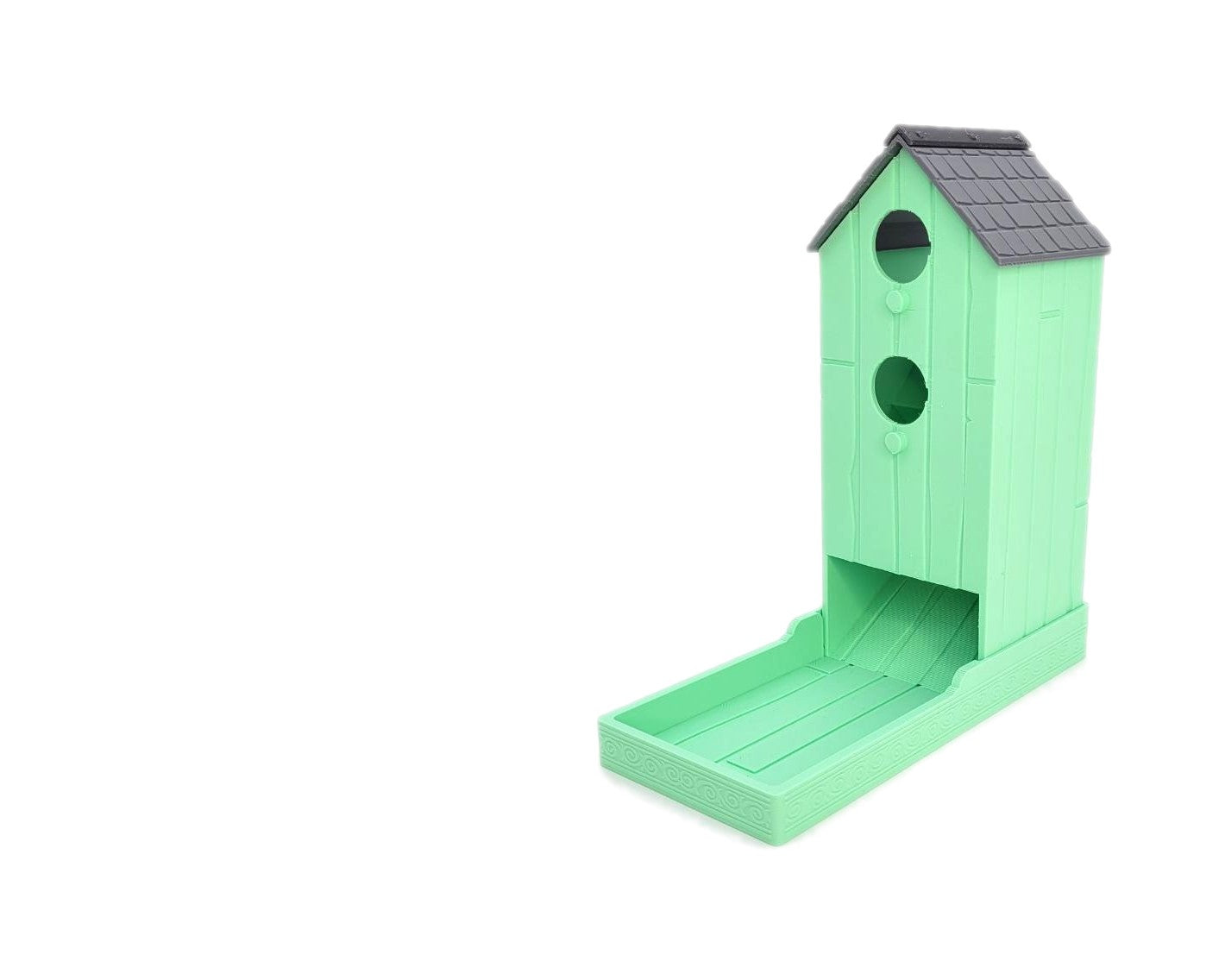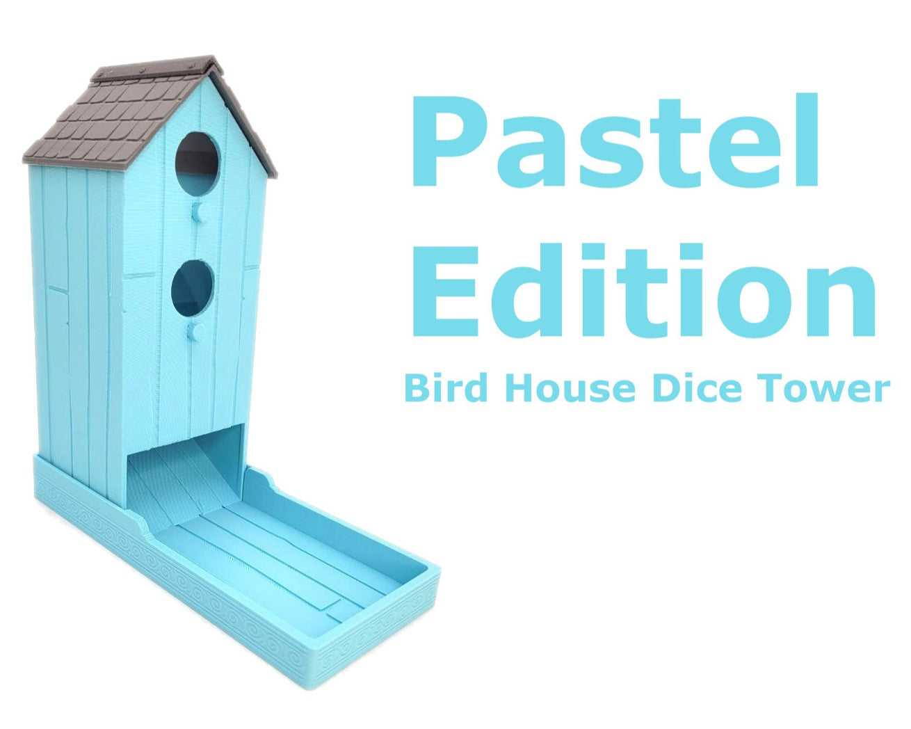 This sturdy 3D printed bird house dice tower will roll those dice. The tower interlocks with the base and can be packed away to fit in the original wingspan box. Non Pastel edition printed in 3 colours, light brown house with dark brown roof and bronze capping. Pastel edition is printed with your pastel colour of choice and a Grey roof and Silver capping. Designed to be suitable with our organiser and suitable for any game to roll those dice. Being a bird house inspired dice tower its ideal for use in games like Wingspan.